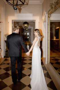 The architectural balance between historic façade and modern interior design allows for a seamless blend of classic and contemporary wedding aesthetics.